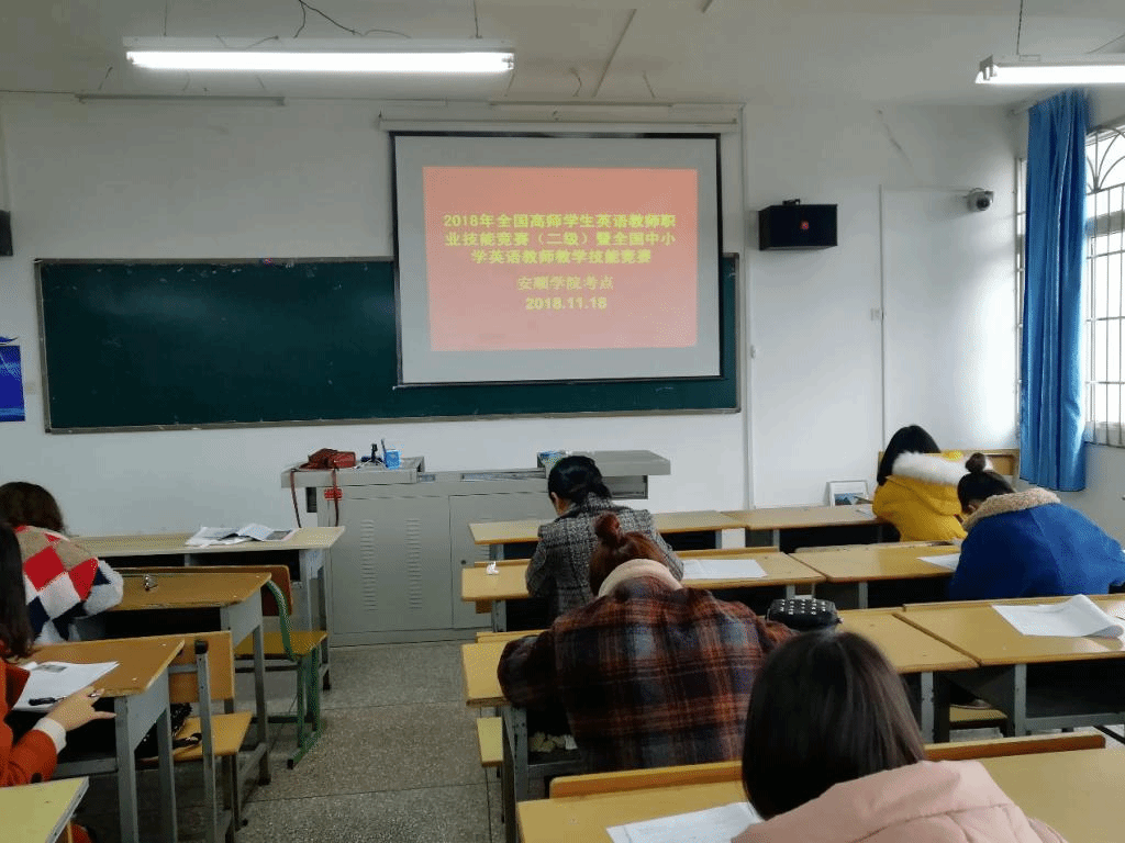 2018年11月18日上午,全国高师学生英语教师职业技能竞赛安顺学院考点初赛在新教学楼B41和B42教室举行。