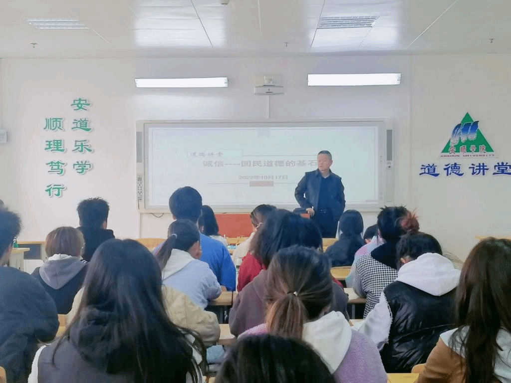 为弘扬诚实守信的传统美德,培养学生良好的道德品质,10月17日下午,安顺学院道德讲堂开展“诚信——国民道德的基石”专题讲座。安顺学院大学公共外语教学部主任虞均杰主讲,外国语学院2021级英语班同学聆听学习。