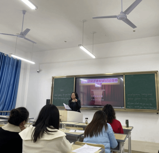 最后,蒋燕院长对选手们的比赛逐一进行了亮点与不足点评,以比赛过程中学生们的表现为实例,就课型的确定、课件制作、教案与板书设计、语音语调等相关环节进行点评,就如何精心设计好每一个教学环节,掌控好教学时间,比赛中需要全情投入,以自然、大方、得体的教学仪态将自己最好最自然的一面展现出来等进行了讲解,并希望选手们要以“只问耕耘,不问收获”的态度,反思自己通过参加此次比赛,相互学习,取长补短,收获了什么,不断的成长。