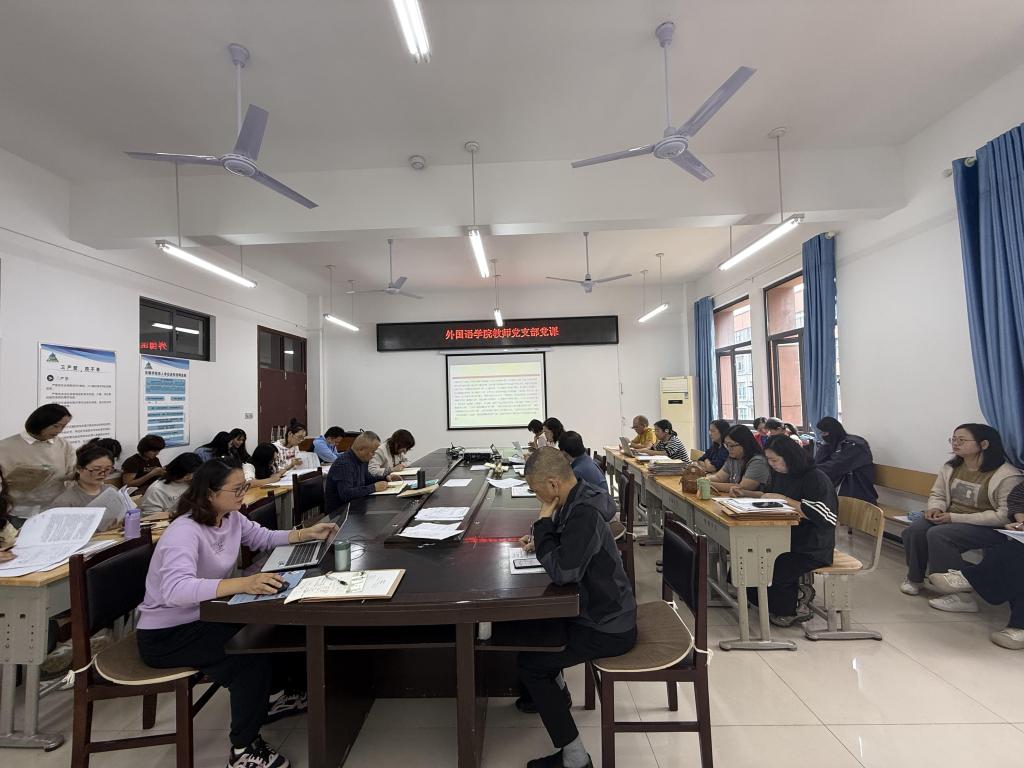 为持续深入学习贯彻习近平总书记关于加强党的作风建设的重要论述和最新重要讲话和重要指示批示精神,系统学习《习近平谈治国理政》第五卷内容,2025年10月10日下午,外国语学院党委书记刘碧芬为教师党支部全体党员讲授党课。