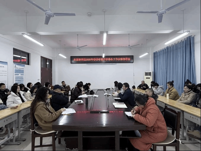 2025年2月21日下午14:30,外国语学院召开全体教职工大会,会议由外国语学院党委书记刘碧芬主持,外国语学院全体教职工参会,会议主要传达学习学校2024—2025学年第二学期中层干部会议精神,部署外国语学院2025年春季学期开学准备工作。
