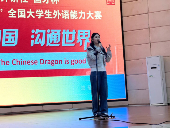 比赛过程中,选手们不仅展现了出色的英语能力,更通过丰富的肢体语言和富有感染力的演讲风格,将龙的魅力展现得淋漓尽致。选手们充满激情、精神饱满,以流畅的语言表达了自己的观点,赢来阵阵掌声,赢得了评委老师的一致好评。经过激烈的角逐,最终来自外国语学院2023级英语二班的郑怡娇凭借其深刻的内容、流畅的表达和出色的舞台表现脱颖而出,荣获本次比赛的冠军。评委们对选手们的表现给予了高度评价,认为他们不仅展示了安顺学院学生的扎实英语功底,更展现了他们的中国文化底蕴与国际视野。