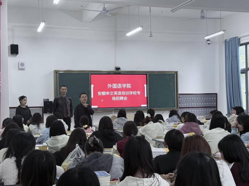 2025年10月20日下午,外国语学院于顺理楼128教室成功举办申文英语培训学校专场招聘会。本次活动面向2026届英语专业毕业生,旨在搭建校企对接平台,促进学生精准就业。
