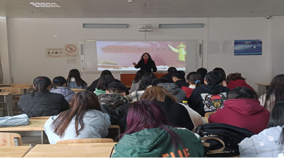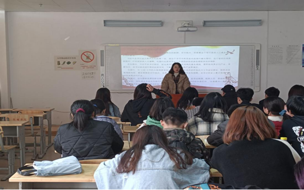 外国语学院2018级日语班于2021年3月24日中午12:00在特教0707教室召开“感恩奋进,不负韶华”主题班会。由刘碧芬书记、班主任陈丽老师分别上台讲述班会的重要内容。此次班会内容由“学习习近平总书记考察贵州重要讲话精神”、“学习习近平总书记在全国脱贫攻坚总结表彰大会上的讲话”、“讲述喀喇昆仑戍边英雄事迹”、“讲述优秀校友王玉老师先进事迹”四个板块组成。